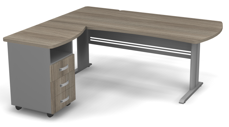 Рабочее место на металлическом каркасе с тумбой L, Дрифтвуд, коллекция Берлин/Berlin