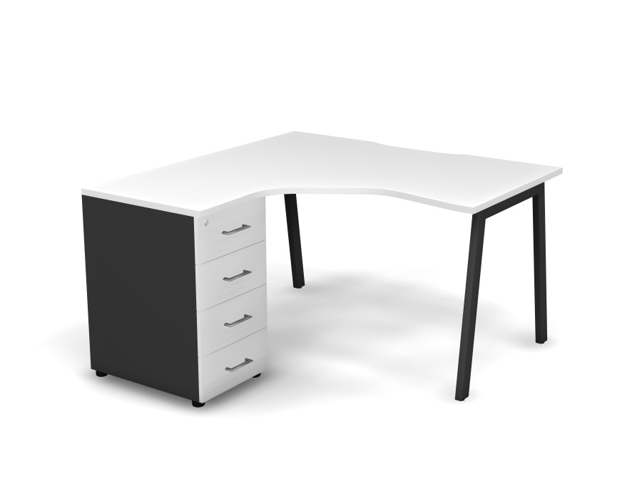 Стол эргономичный с тумбой L, проводник вырезной (А-обр. опоры)