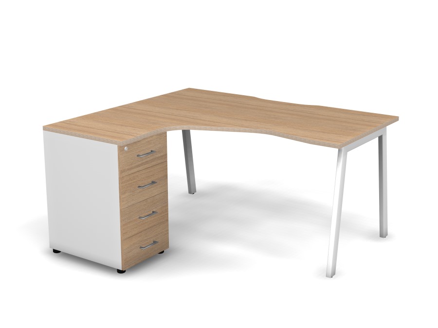 Стол эргономичный с тумбой L, проводник вырезной (А-обр. опоры)