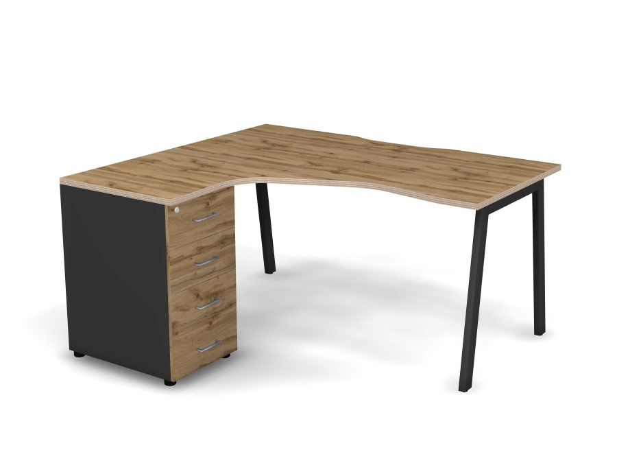 Стол эргономичный с тумбой L, проводник вырезной (А-обр. опоры)