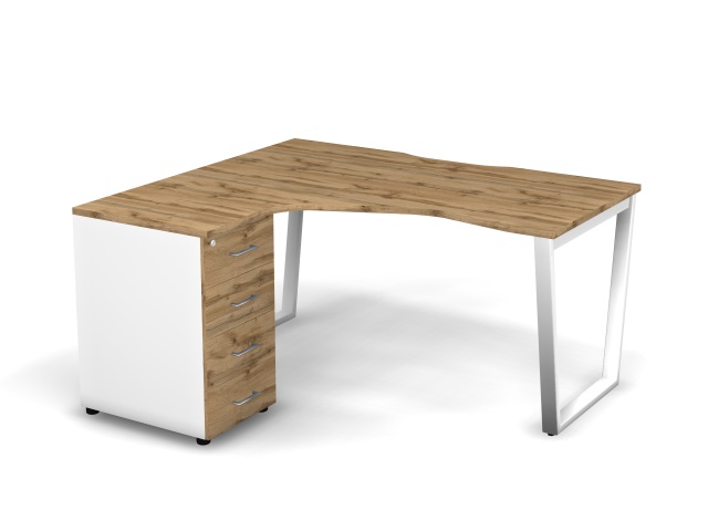 Стол эргономичный с тумбой L, проводник вырезной (V-обр. опоры)