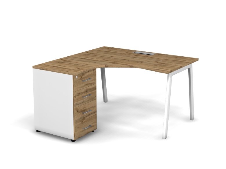 Стол эргономичный левый с тумбой Матрикс Нью (138x138x77,5) с простыми и правильными формами создает непринужденный офисный стиль и настраивает на эффективную командную работу. Стол оснащен проводником Merida (Дания), расположенным посередине столешницы, и A-образными металлическими опорами. Металлический каркас представляет собой конструкцию из опор с регулировкой высоты (+15 мм), соединённых одной металлической траверсой. Тумба Matrix New комплектуется центральным замком. Ручки металлические, покрытие – полированный хром.
