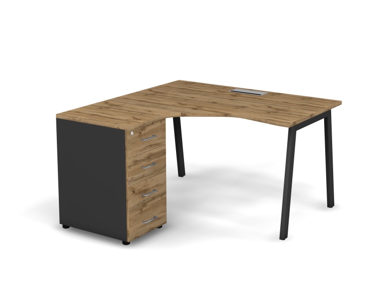 Стол эргономичный с тумбой L, проводник Merida (А-образные опоры)
