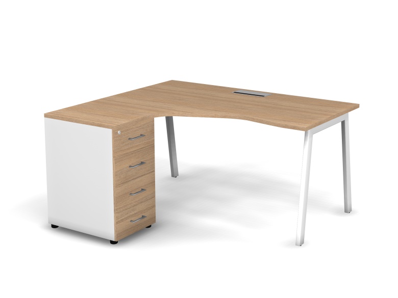 Стол эргономичный левый с тумбой Матрикс Нью (158x138x77,5) с простыми и правильными формами создает непринужденный офисный стиль и настраивает на эффективную командную работу. Стол оснащен проводником Merida (Дания), расположенным посередине столешницы, и A-образными металлическими опорами. Металлический каркас представляет собой конструкцию из опор с регулировкой высоты (+15 мм), соединённых одной металлической траверсой. Тумба Matrix New комплектуется центральным замком. Ручки металлические, покрытие – полированный хром.