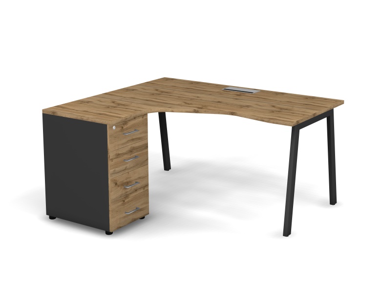 Стол эргономичный левый с тумбой Матрикс Нью (158x138x77,5) с простыми и правильными формами создает непринужденный офисный стиль и настраивает на эффективную командную работу. Стол оснащен проводником Merida (Дания), расположенным посередине столешницы, и A-образными металлическими опорами. Металлический каркас представляет собой конструкцию из опор с регулировкой высоты (+15 мм), соединённых одной металлической траверсой. Тумба Matrix New комплектуется центральным замком. Ручки металлические, покрытие – полированный хром.