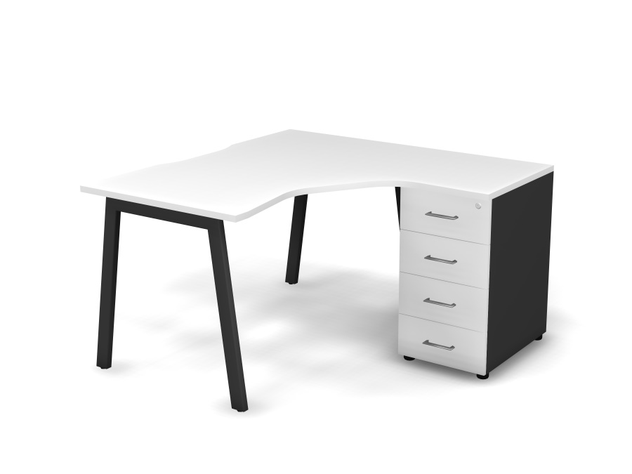 Стол эргономичный с тумбой R, проводник вырезной (А-обр. опоры)