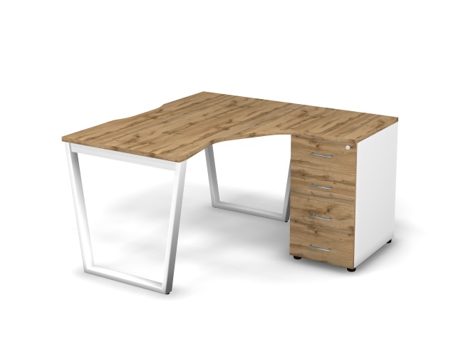 Стол эргономичный с тумбой R, проводник вырезной (V-обр. опоры)