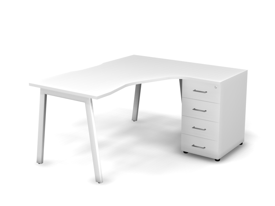 Стол эргономичный с тумбой R, проводник вырезной (А-обр.опоры) W