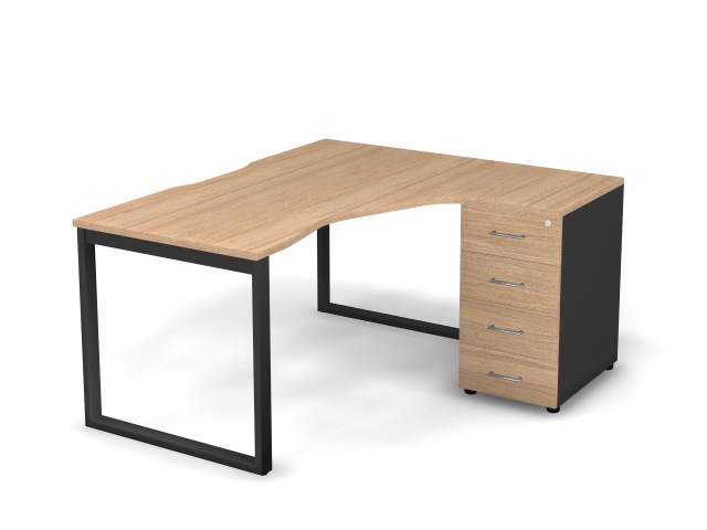 Стол эргономичный с тумбой R, проводник вырезной (O-обр. опоры)
