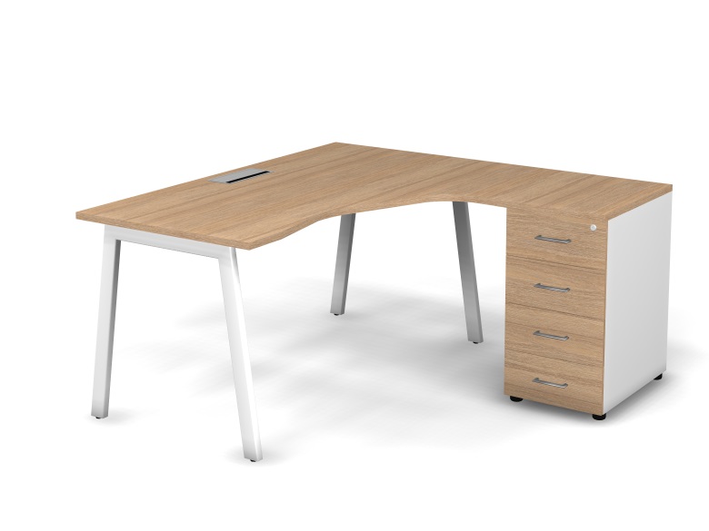 Стол эргономичный с тумбой R, проводник Merida (А-образные опоры)