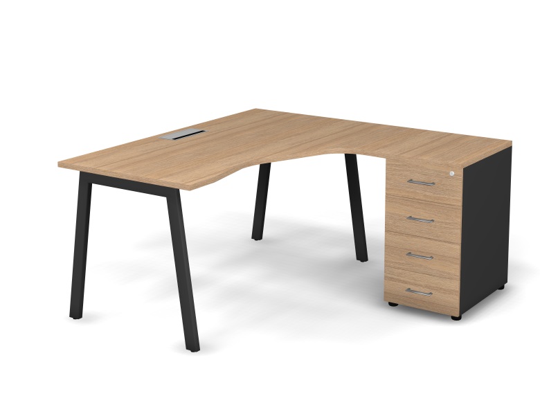Стол эргономичный с тумбой R, проводник Merida (А-образные опоры)