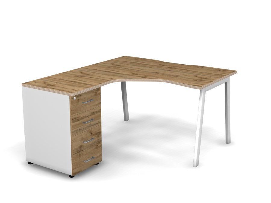 Стол эргономичный с тумбой L, проводник вырезной (А-обр. опоры)