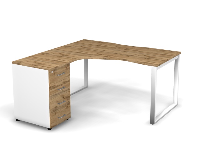 Стол эргономичный с тумбой L, проводник вырезной (O-обр. опоры)