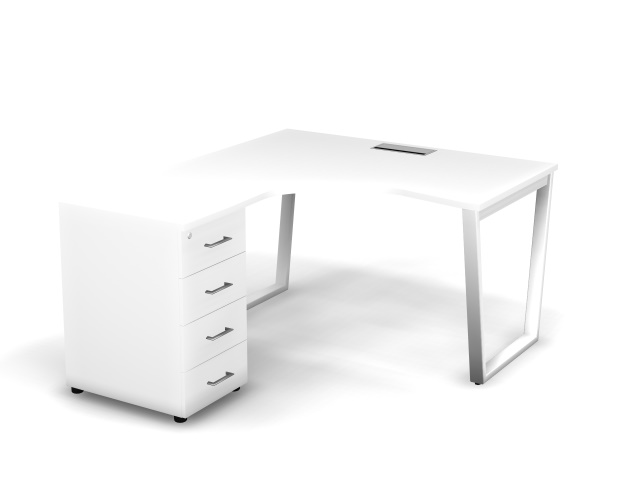 Стол эргономичный левый с тумбой Матрикс Нью (138x158x77,5) с простыми и правильными формами создает непринужденный офисный стиль и настраивает на эффективную командную работу. Стол оснащен проводником Merida (Дания), расположенным посередине столешницы, и V-образными металлическими опорами. Металлический каркас представляет собой конструкцию из опор с регулировкой высоты (+15 мм), соединённых одной металлической траверсой. Тумба Matrix New комплектуется центральным замком. Ручки металлические, покрытие – полированный хром.
