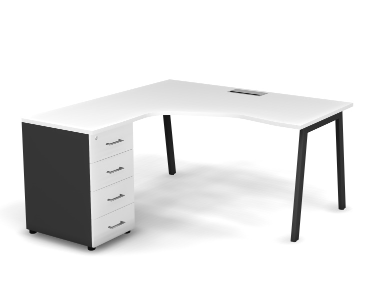 Стол эргономичный с тумбой L, проводник Merida (А-образные опоры)