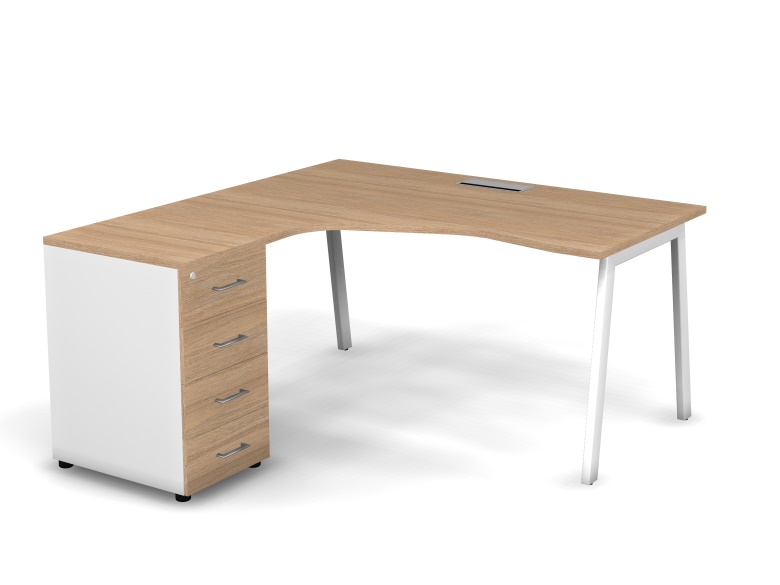 Стол эргономичный с тумбой L, проводник Merida (А-образные опоры)