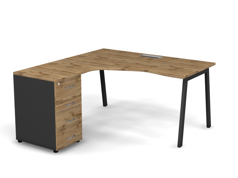 Стол эргономичный левый с тумбой Матрикс Нью (158x158x77,5) с простыми и правильными формами создает непринужденный офисный стиль и настраивает на эффективную командную работу. Стол оснащен проводником Merida (Дания), расположенным посередине столешницы, и A-образными металлическими опорами. Металлический каркас представляет собой конструкцию из опор с регулировкой высоты (+15 мм), соединённых одной металлической траверсой. Тумба Matrix New комплектуется центральным замком. Ручки металлические, покрытие – полированный хром.