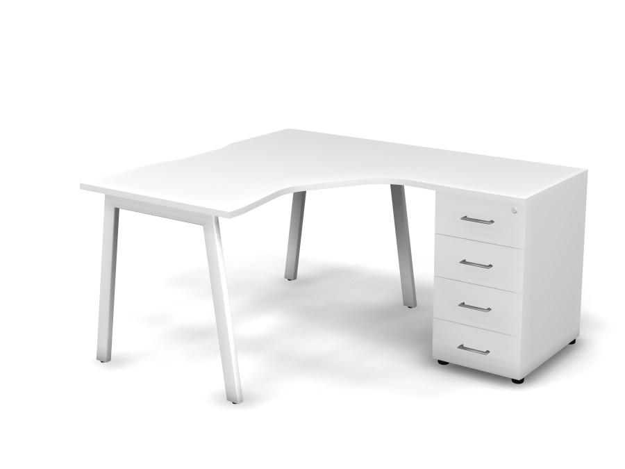 Стол эргономичный с тумбой R, проводник вырезной (А-обр.опоры) W