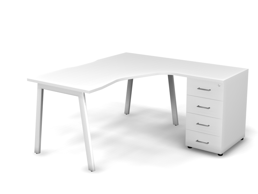 Стол эргономичный с тумбой R, проводник вырезной (А-обр.опоры) W