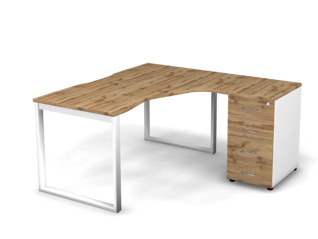 Стол эргономичный с тумбой R, проводник вырезной (O-обр. опоры)