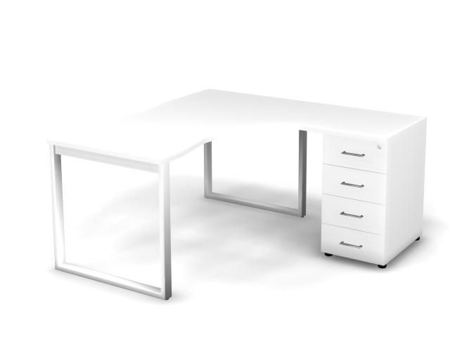 Стол эргономичный с тумбой R, проводник вырезной (O-обр.опоры) W