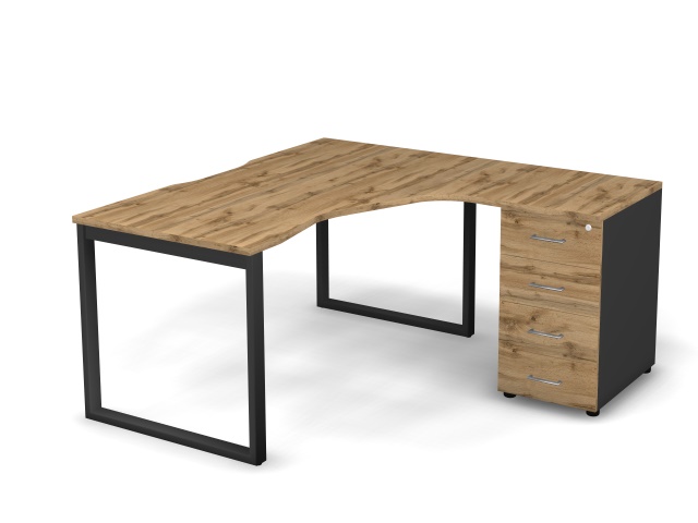 Стол эргономичный с тумбой R, проводник вырезной (O-обр. опоры)