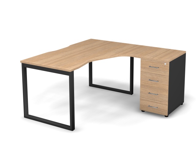 Стол эргономичный с тумбой R, проводник вырезной (O-обр. опоры)