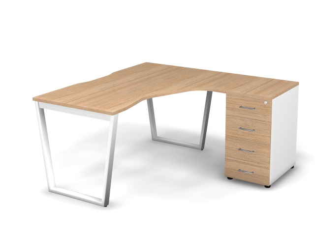 Стол эргономичный с тумбой R, проводник вырезной (V-обр. опоры)