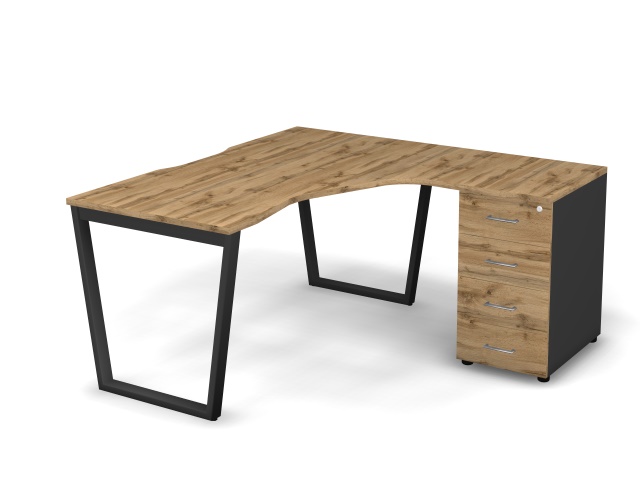 Стол эргономичный с тумбой R, проводник вырезной (V-обр. опоры)
