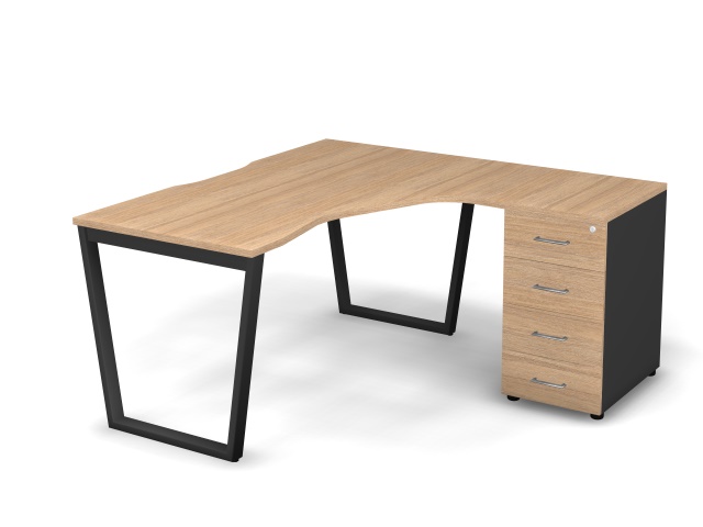 Стол эргономичный с тумбой R, проводник вырезной (V-обр. опоры)