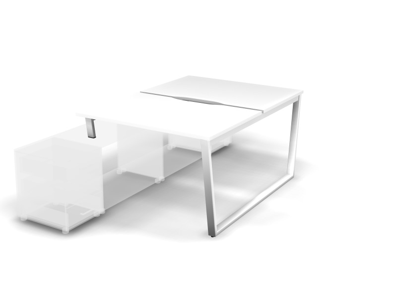 Стол прямой с опорой на тумбу, проводник вырезной V-обр. опоры W