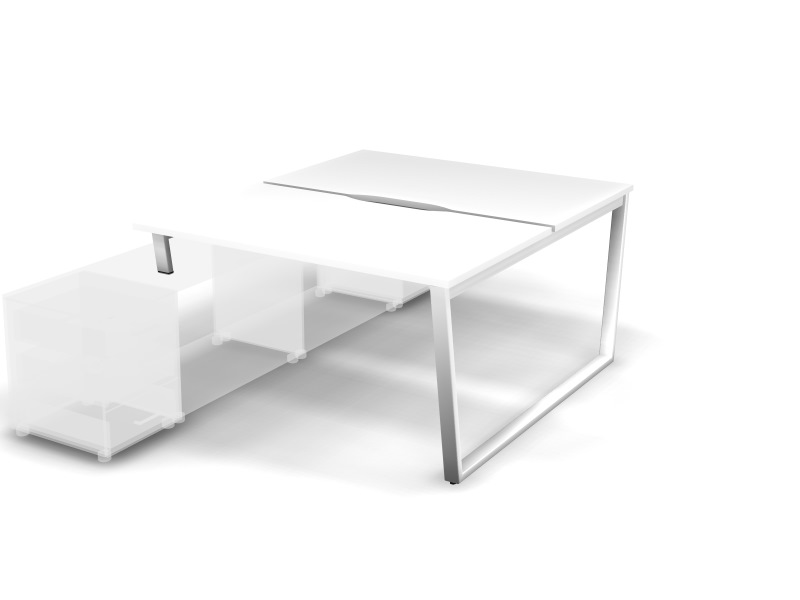Стол прямой с опорой на тумбу, проводник вырезной V-обр. опоры W